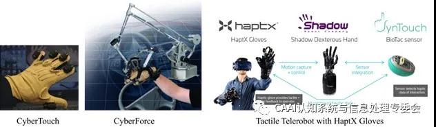 觸覺反饋對于接觸豐富的外部操作任務(wù)至關(guān)重要,觸覺設(shè)備已在外科手術(shù)機(jī)器人中得到廣泛研究,并用于在虛擬現(xiàn)實(shí)應(yīng)用程序中收集訓(xùn)練數(shù)據(jù),如HaptX development kit。一些商業(yè)產(chǎn)品CyberGlove、HaptX以物理阻力和空間接觸的形式提供了觸覺反饋,但是這種好處伴隨著成本的增加。HaptX與Converge Robotics Group(由國際公司組成的財(cái)團(tuán))共同開發(fā)了TactileTelerobot遠(yuǎn)程機(jī)器人,以推動觸覺和機(jī)器人技術(shù)的發(fā)展 [6]。TactileTelerobot是世界上D一個能夠?qū)⒈普娴挠|摸反饋傳輸給位于世界各地的操作員的機(jī)器人系統(tǒng),該系統(tǒng)集成了三個主要產(chǎn)品,每個主要產(chǎn)品都在其類別中處于L先地位:Shadow Robot Hands,SynTouch BioTac傳感器和HaptX Gloves。Tactile Telerobot通過真實(shí)無延遲的觸覺反饋實(shí)現(xiàn)了多種機(jī)械手靈巧操作,如倒水、擰瓶蓋、轉(zhuǎn)魔方、寫字、開紙盒、幫人帶耳機(jī),甚至人體按摩等。
