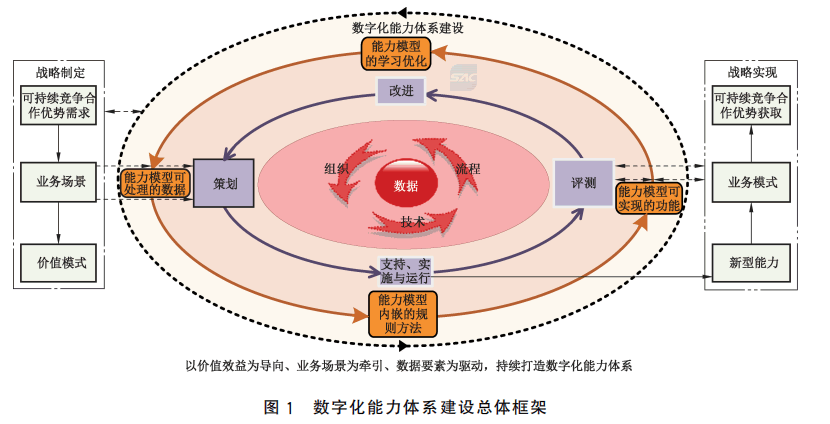 策劃(Plan):企業(yè)應(yīng)綜合研判可持續(xù)競爭合作優(yōu)勢、業(yè)務(wù)場景、價值模式等發(fā)展戰(zhàn)略相關(guān)關(guān)鍵需求, 圍繞價值體系的優(yōu)化、創(chuàng)新和重構(gòu),以業(yè)務(wù)場景為牽引,識別擬打造的數(shù)字化能力(體系),并從能力模型 可處理的數(shù)據(jù)、能力模型內(nèi)嵌的規(guī)則方法、能力模型可實現(xiàn)的功能、能力模型的學(xué)習(xí)優(yōu)化等方面進(jìn)一步 明確相關(guān)數(shù)字化能力(體系)建設(shè)的具體需求。在此基礎(chǔ)上,根據(jù)業(yè)務(wù)場景和相關(guān)數(shù)字化能力(體系)建 設(shè)的需求,策劃形成涵蓋數(shù)據(jù)、技術(shù)、流程、組織等四要素的數(shù)字化能力(體系)建設(shè)系統(tǒng)性解決方案。