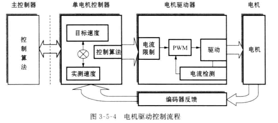 運(yùn)動(dòng)控制系統(tǒng)由通信模塊、電源模塊、控制模塊和電機(jī)驅(qū)動(dòng)模塊組成。一塊主 控制板(STM32) 控制3塊驅(qū)動(dòng)電路,分別驅(qū)動(dòng)3個(gè)全方位輪,實(shí)現(xiàn)3軸聯(lián)動(dòng)。當(dāng)機(jī)器人工作時(shí),通信模塊負(fù)責(zé)從PC 機(jī)接收指令數(shù)據(jù),包括3個(gè)輪子的速度和是否踢 球判斷以及踢球力度?刂颇K將3個(gè)輪子的速度發(fā)送到運(yùn)動(dòng)控制模塊,并產(chǎn)生 一個(gè)踢球信號(hào)控制氣動(dòng)踢球系統(tǒng)產(chǎn)生踢球動(dòng)作。運(yùn)動(dòng)控制模塊則控制著3個(gè)輪子 的速度,并且將通過(guò)閉環(huán)采集到的電機(jī)碼盤信息獲得的3個(gè)輪子的速度反饋回PC 機(jī),供機(jī)器人上層策略算法使用。其結(jié)構(gòu)圖如圖3-5-3。通信模塊和運(yùn)動(dòng)控制模塊的CPU采用的是 STM32F103CB。