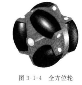 全方位輪種類很多,本節(jié)以圖3-1-4中所示的全方 位輪為例進行討論,它的組成是在輪轂的外緣上設(shè)置有 可繞自己的軸旋轉(zhuǎn)的輥子,且均勻分布于輪轂周圍,這 些輥子軸線(E) 和輪轂軸線(S,) 的夾角a 為90°。該麥 卡納姆輪由雙排自由滾動的輥子組成,使得輪子在地面 滾動時形成連續(xù)的接觸點。而在運動時輪轂是驅(qū)動機 構(gòu),輥子是從動機構(gòu),因此在本節(jié)中主動輪由圖3-1-5 所示車輪輪轂與邊沿輥子組成,從動輪為車輪輥子,主 動輪、從動輪與地面接觸點均為輥子與地面的接觸點。